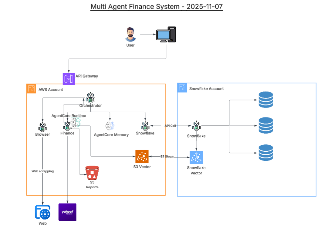 Complete system architecture for AI-powered financial analysis and automation.